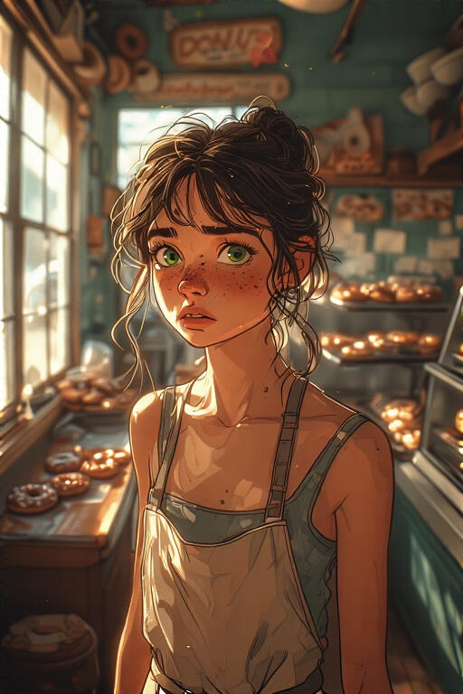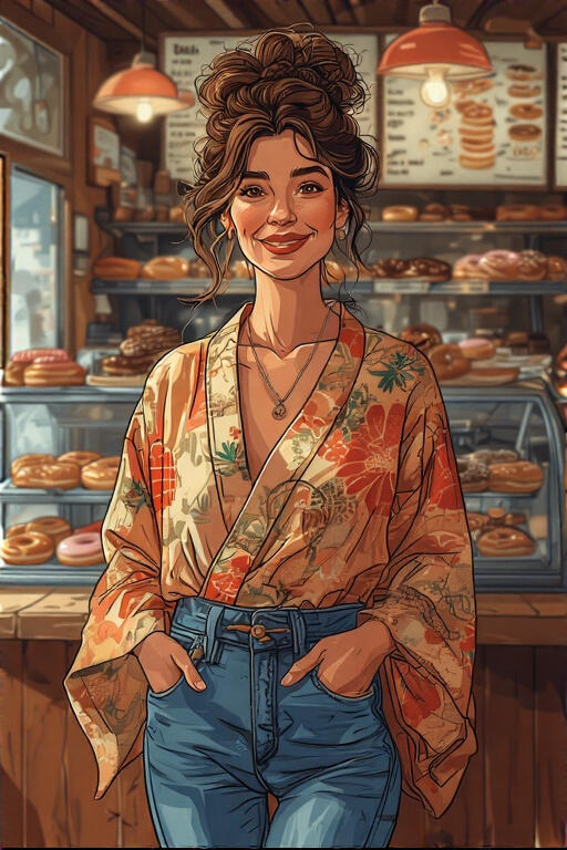 Roxie - Owner: Yoga instructor turned donut cafe owner. Use to run the cafe alone with help from her kids Patrick and Willow.